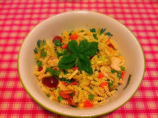 This small statement brings me to this dish for today, it's "fast-food" in the opposite way. I made this salad in about 20 minutes or so. It's sometimes considered a side dish but I made it as a regular meal for the day, actually for dinner. Every day I try to find quick, easy but healthy meals for me and my little boy. It's hard.